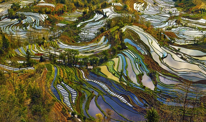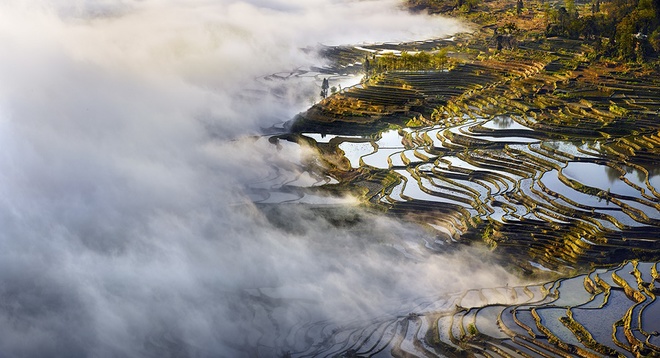 Những dải ruộng uốn lượn kéo từ núi cao xuống tận thung lũng, tạo nên những đường nét phức tạp phản ảnh lại ánh mây trời. Con người và thiên nhiên hòa hợp tạo nên một vẻ đẹp ấn tượng đầy cảm hứng. Những thửa ruộng đổi thay theo từng khoảng thời gian trong ngày và tùy vào điều kiện thời tiết.